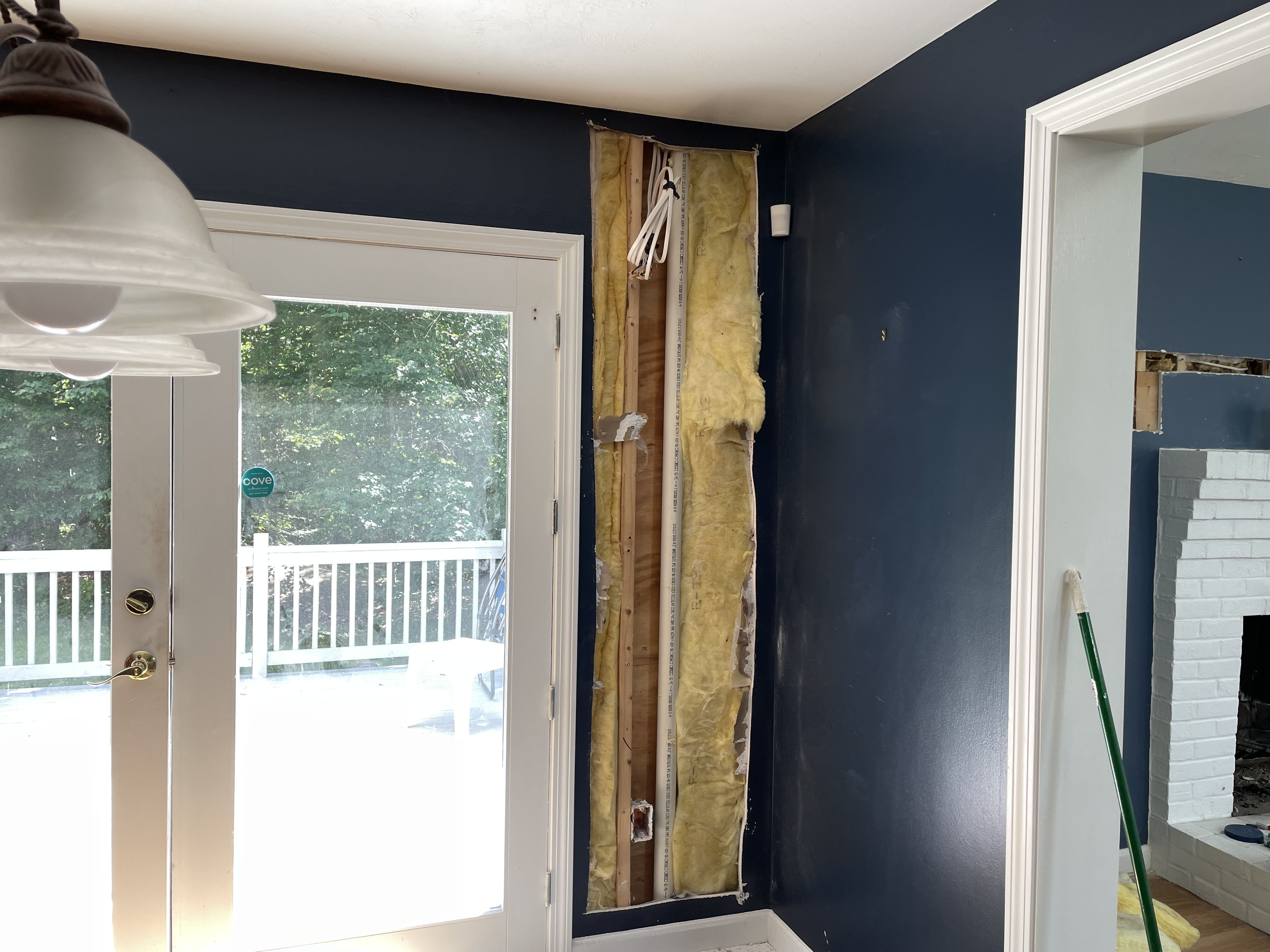 The increase of 1 foot of the new fireplace coming the next day meant the sconces had to move. So we startred the wiring